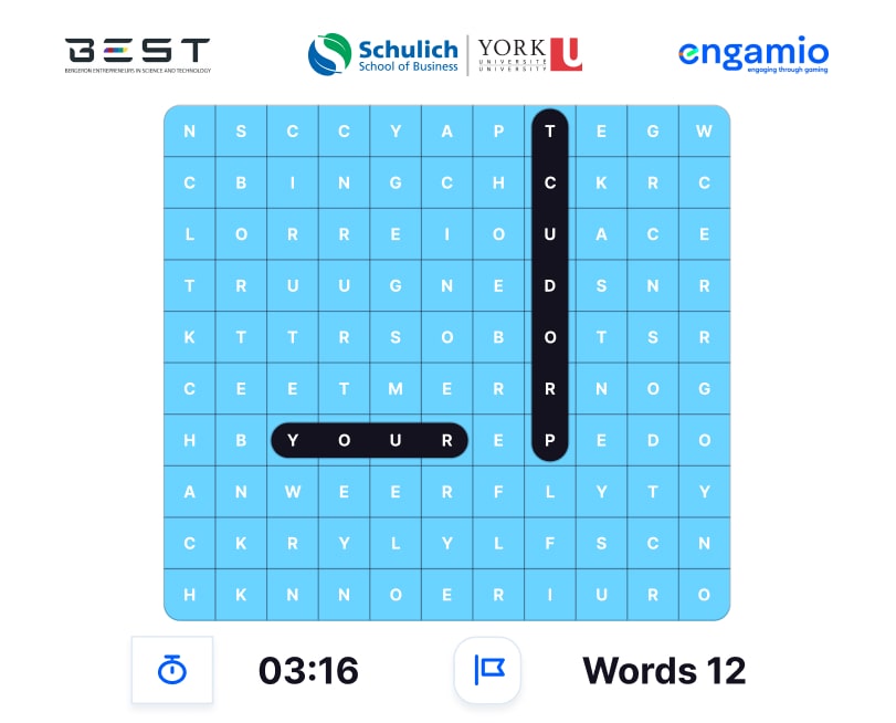 a.k.a. Word Find, Word Seek, Word Puzzle, or Mystery Word. Now you can design your own word search boards across desired topics, customize them with the branding, storytelling, special offers, and run an interactive competition among your attendees before or during the event!